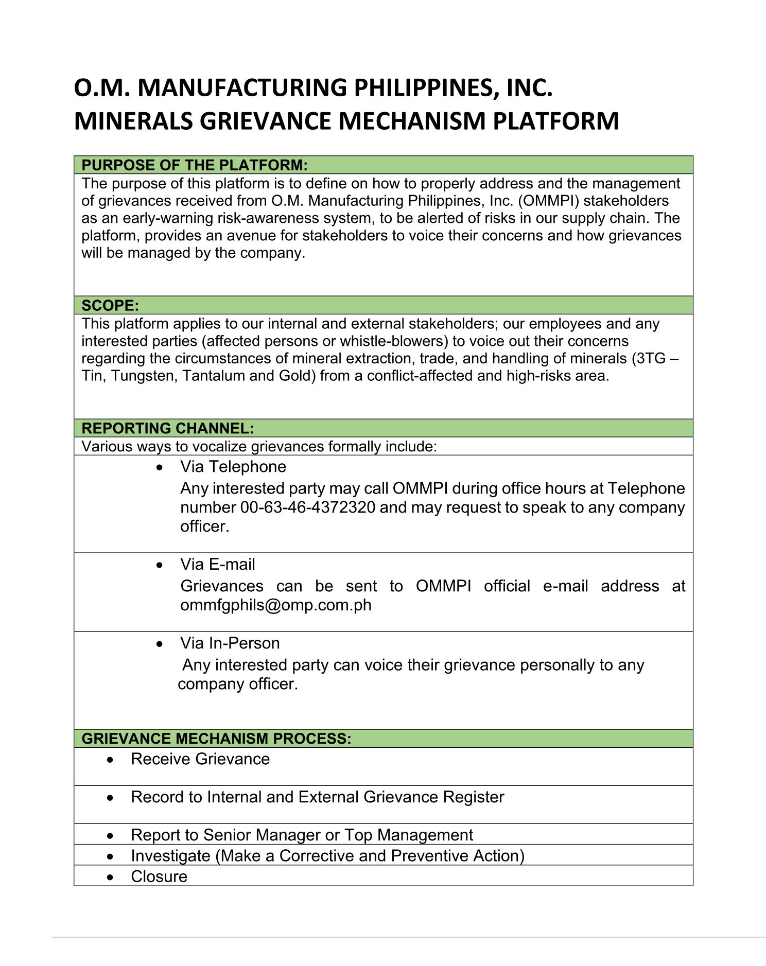 Grievance Mechanism Platform